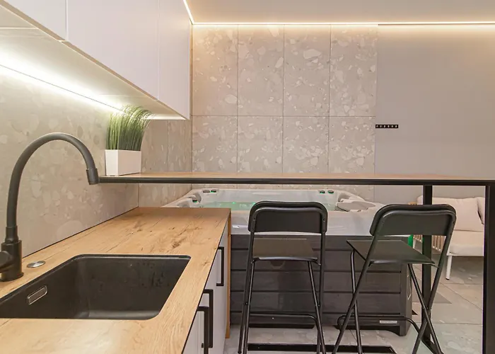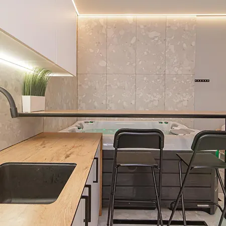 1-pokojowy Secret Spa leży w dzielnicy Snipiskes w Wilnie posiada jacuzzi i saunę. Muzeum Pieniądza Banku Litewskiego leży w odległości około 25 min spacerem, a Kościół św. Anny w Wilnie - prawie 25 min spacerem od apartamentu o powierzchni 40 m^2.